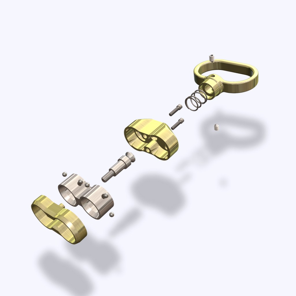 The development of this design was an iterative process, involving multiple prototypes to perfect the release mechanism and determine the ideal sizing of the finger loop.