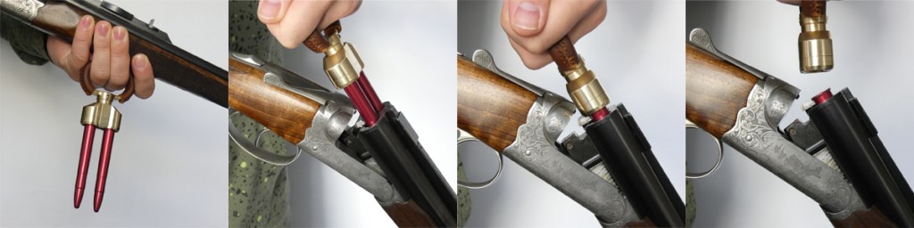 The speed loader is ergonomically designed to be comfortably held in the shooter’s fore end hand. After breaking the rifle open, the shooter can easily chamber the cartridges and smoothly resume their grip on the fore end, swiftly closing the action to take the follow-up.