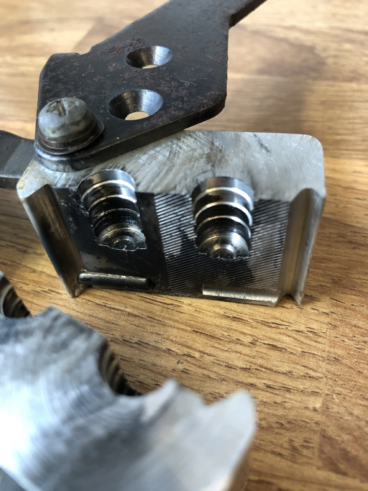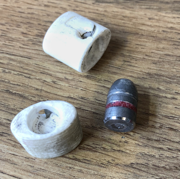 Many cast bullet moulds leave a flat back to the bullet. This makes it difficult to insert the bullet into the brass case, even with a flare on the case mouth. Our solution was inspired by a pencil sharpener. This design manually cuts a slight chamfer on the base of the bullet without upsetting the bullet weight. Several caliber sizes were developed and the images show prototypes being tested.
