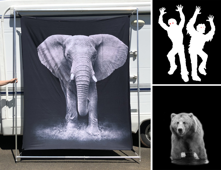 Many shooters want to shoot a more lifelike target if their backstop is suitable. This target is printed on fabric and is pulled out tight to the corners of a take apart, lightweight frame. The fabric can be easily repaired with iron on fabric repair webbing and reused many times. Being fabric it is weather proof and lightweight. The elephant is half size but other targets such as deer, lion and bear can be life size.