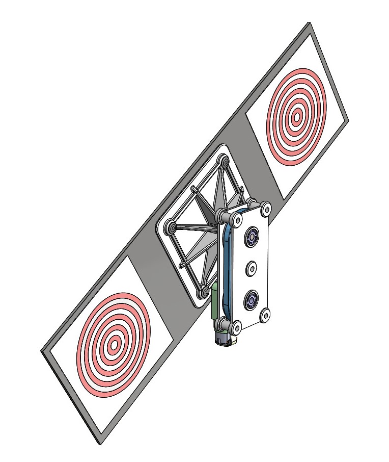 The target board is belt driven and this approach has enabled other versions to be built that use a multi groove pulley on the gearbox output shaft to drive several other target boards arranged around the drive unit. Crossing the belt between the drive pulley and target board pulley reverses the direction of target rotation. Using pulleys of different sizes results in targets rotating at different speeds. Once this is installed it will be a very challenging COF. Watch this space.